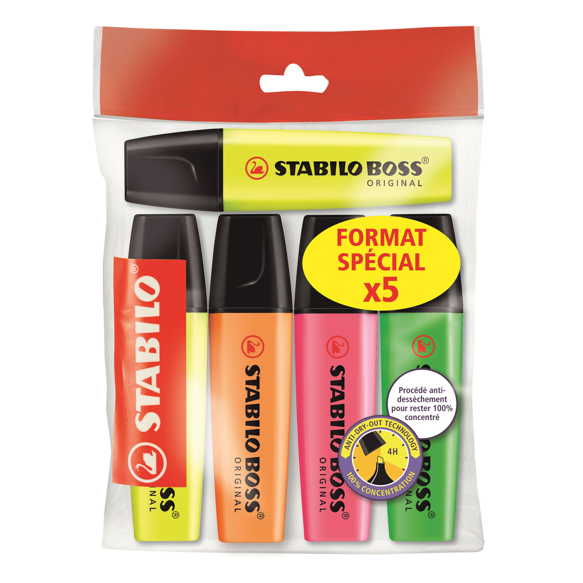 Highlighter Stabilo Boss assorted colors - Pack of 5