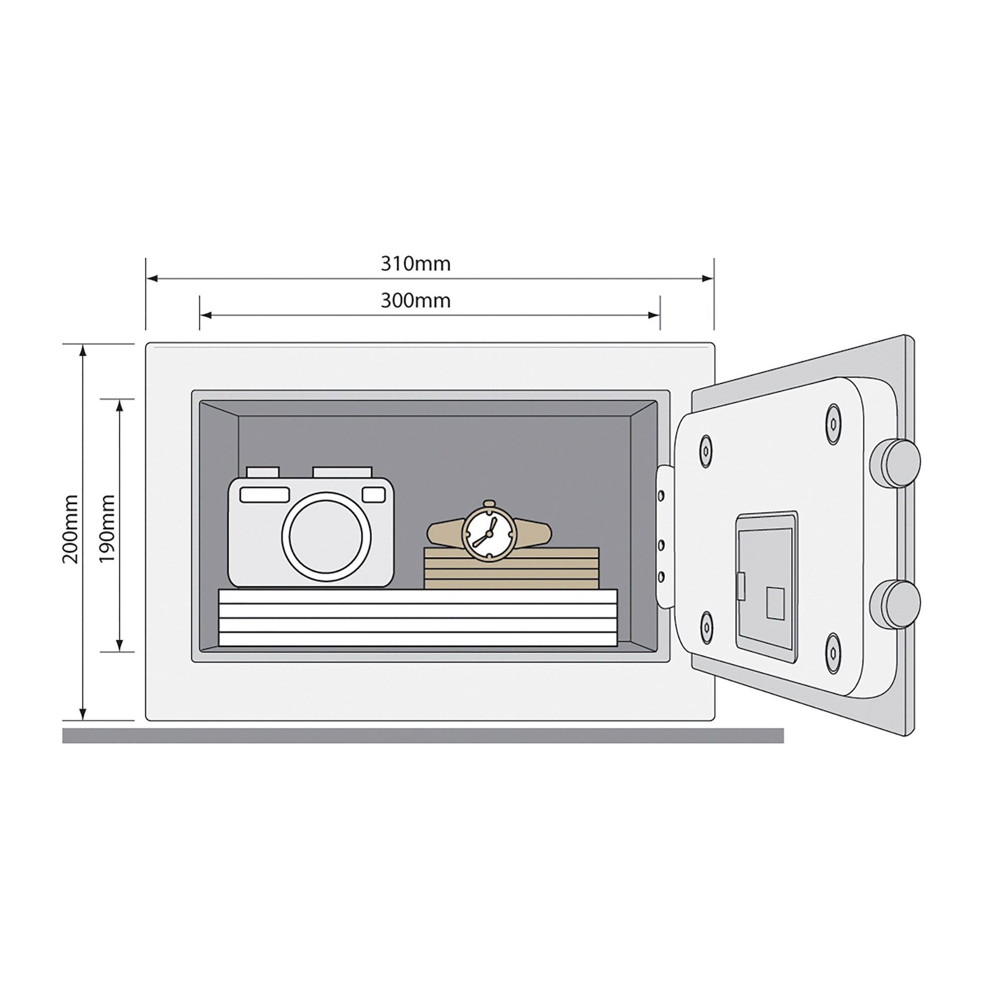 Contenu de l’emballage : 1 x Coffre-fort 2 x Clés radiales 4 x Piles 1 x Kit de fixation 1 x Notice