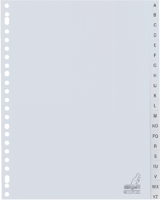 Intercalaire Kangaro G420AZM A4 23 perforations 20 onglets A-Z PP gris