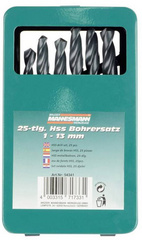 Optez pour le Jeu de forets hélicoïdaux Brüder Mannesmann Green Line, un ensemble de 25 pièces conçu pour répondre à tous vos besoins de perçage dans le métal. Ce jeu de forets de haute qualité vous permettra de réaliser des travaux de précision en toute simplicité, grâce à la variété de diamètres proposés.