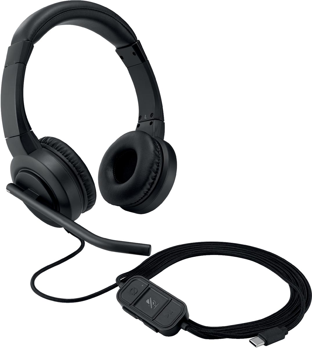 Optez pour le Kensington H1000 Micro-casque USB-C supra-auriculaire et bénéficiez d'une expérience audio de qualité professionnelle, alliant confort et productivité. Ce casque binaural est doté d'un micro à suppression de bruit, de témoins lumineux pour le mode ""ne pas déranger"" et la désactivation du son, de l'effet vocal (Sidetone) pour un meilleur feedback audio, et de commandes pour votre musique. Il fait partie de l'écosystème de visioconférence professionnelle de Kensington, vous offrant ainsi une expérience intégrée pour maximiser votre productivité.