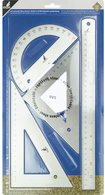 Detailled descriptionAcier inoxydable, avec dos antidérapant en liège,contenu: 1 règle 300 mm, 1 équerre 30/60 degrés,1 équerre 45/90, 1 rapporteur