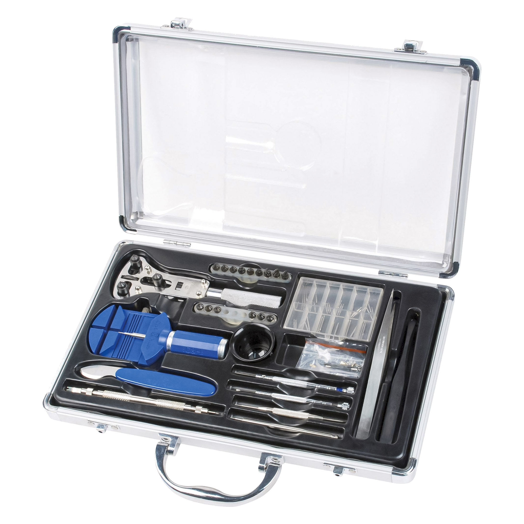 Les outils sont soigneusement rangés à l'intérieur de la mallette, offrant une organisation optimale et un accès rapide à l'outil souhaité. De plus, la mallette est compacte et légère, facilitant le transport de votre kit d'outils d'horloger lors de vos déplacements professionnels ou personnels.