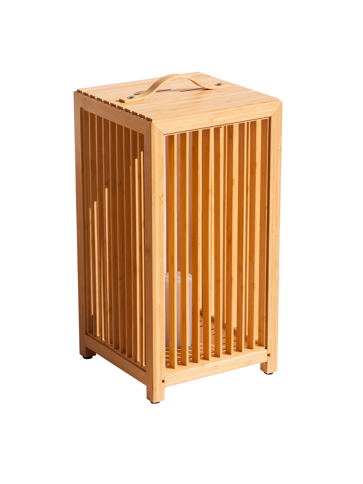 Lampe portable en bambou pour la table ou une ballade nocturne au jardin.