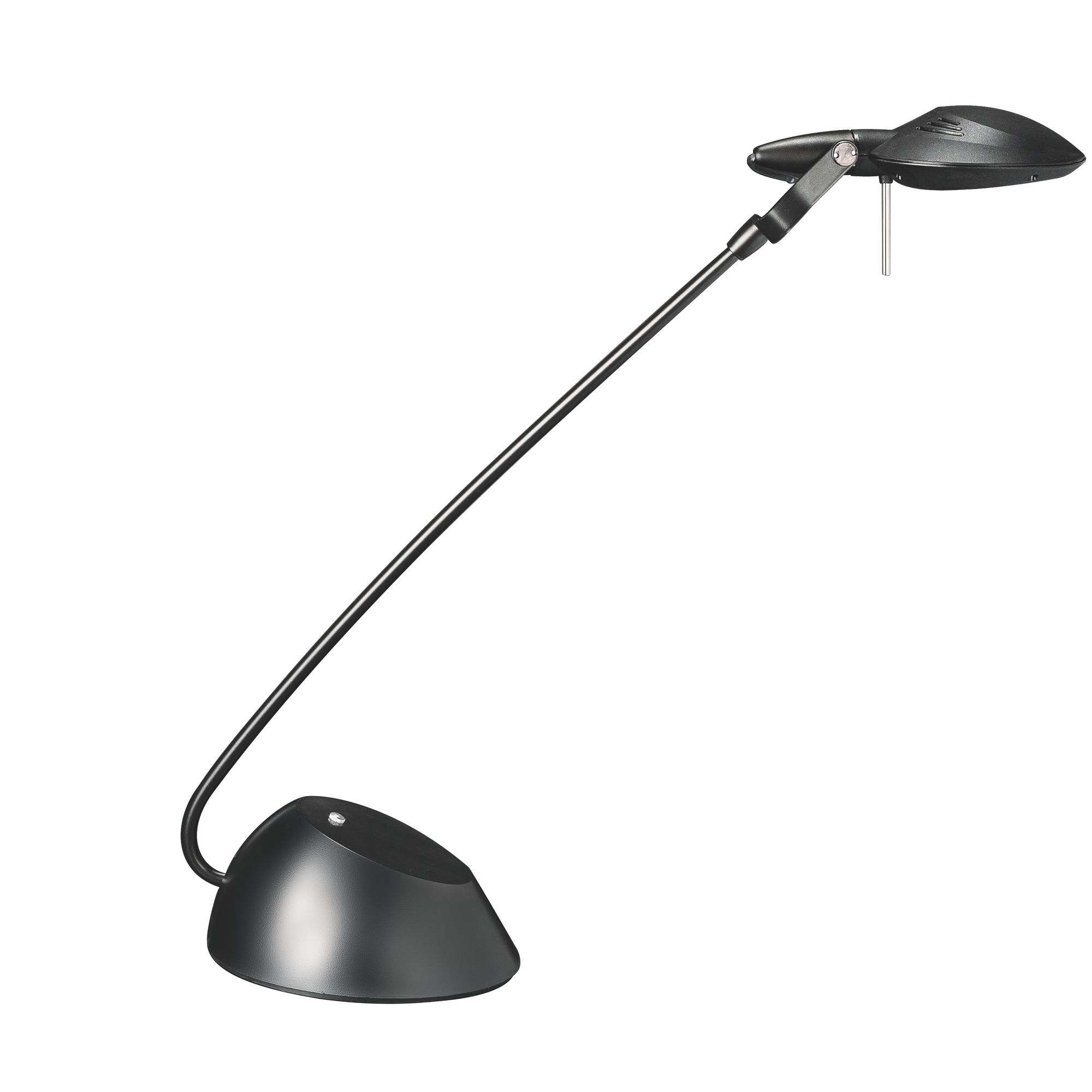 Detailled descriptionLed light 6 W. Touch switch 4 positions. H 54 cm base Ø 16 cm. Black metal arm. Head and base in black ABS.