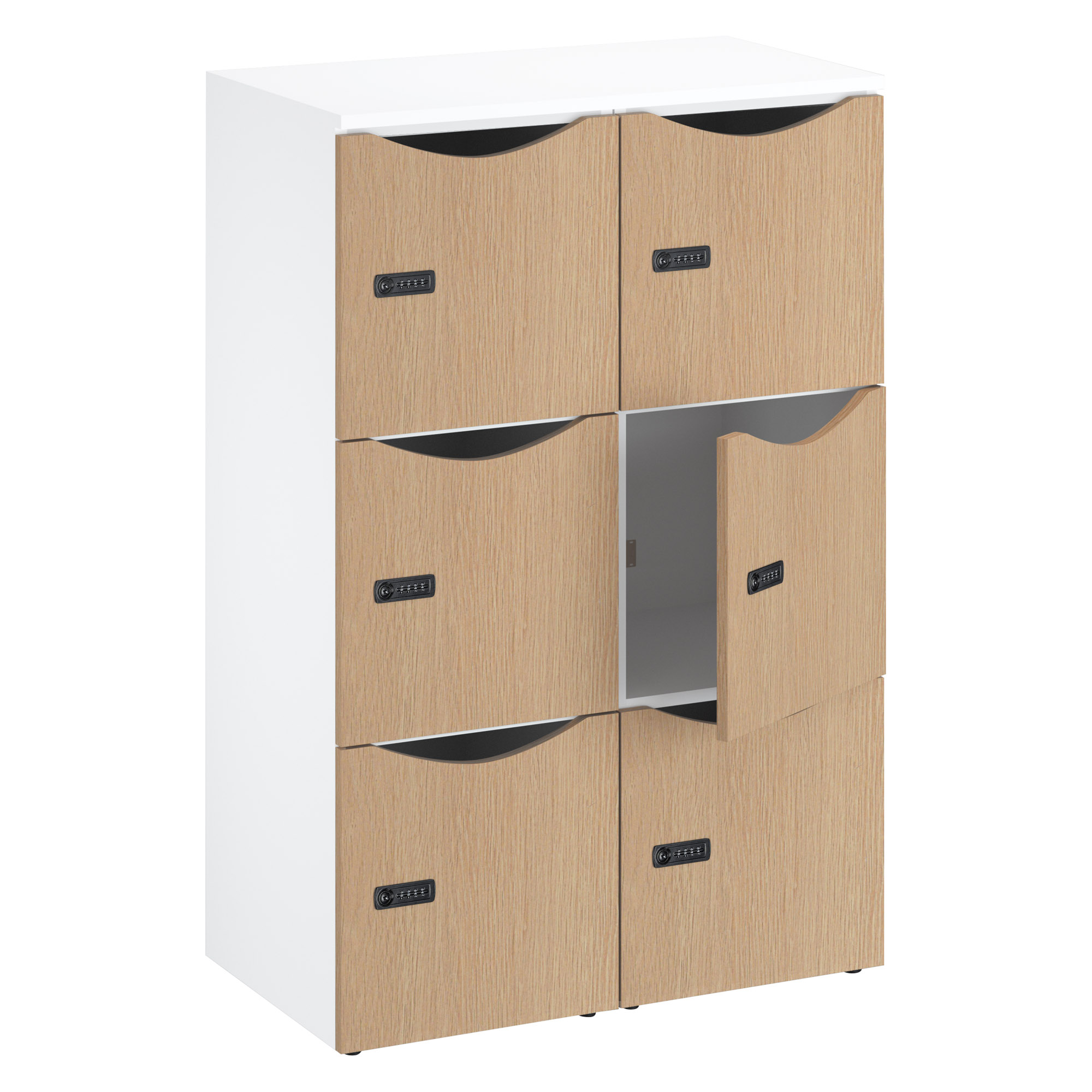 Locker with 6 compartments including 2 columns of 3 compartments H 169 cm, 1 finish top of 1.9 cm and a spare key.