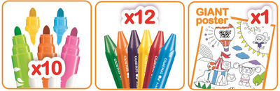 Pour compléter cet ensemble, la valise inclut également un coloriage, offrant aux enfants un support pour exercer leurs compétences artistiques et mettre en pratique l'utilisation des crayons et feutres fournis.