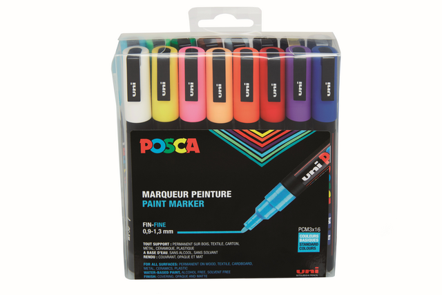 Le PC-3M convient à de très nombreux publics : aux artistes et aux professionnels de la création, comme les designers qui l'utilisent pour effectuer des mises en couleur ou hachurer des plans ; aux amateurs de loisirs créatifs, scrapbooking et carterie qui l’utilisent pour décorer des photos, écrire sur du verre, réaliser de belles tables ; aux passionnés de home déco pour détourner des objets ; aux surfeurs et aux skateurs pour customiser leurs planches ; aux créatifs du quotidien pour relooker une casquette, un tee-shirt ; et aussi aux débutants pour des dessins au rendu profond et lumineux. Vous pouvez retirer la pointe et la rincer à l'eau pour les nettoyer. Application : papier, plastique, verre, textile, bois, pierre, porcelaine, etc. Parfait pour créer des motifs uniques, pour l'intérieur comme pour l'extérieur. L'encre pigmentaire est à base d'eau et est inodore. * Convient à tous les supports. * Haute résistance aux UV. * Couleurs opaques. * Lavable * Miscible * Aquarellable * Superposable. * Set de 16 couleurs.