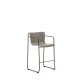 • Stool with seat and backrest made of hand-woven and UV-resistant grey and ecru mottled rope cord.
