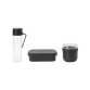 §Take your lunch with you - lunch and breakfast set for on-the-go.§Complete - Breakfast Bowl, Water Bottle, and Lunch Box.§Versatile - lunch box (volume M, 1.1L).§Large capacity - breakfast bowl can hold up to 500ml of yogurt, cereal, etc.§Convenient hydration - water bottle with fruit sieve (500ml).§Airtight closure - lunch box lid with clips.§No spillage - secure click closure lunch box and 100% leak-proof bottle and bowl.§Hot breakfast - microwave-safe bowl.§Crunchiness guaranteed - breakfast bowl with toppings container to keep nuts, seeds, and other items dry (180ml).§Easy to clean - dishwasher safe.§Durable - reusable kit made with durable materials.§No hassle of use - 5-year warranty and service.§Conscious choice - BPA-free.§More sustainable choice - 100% recyclable after use.