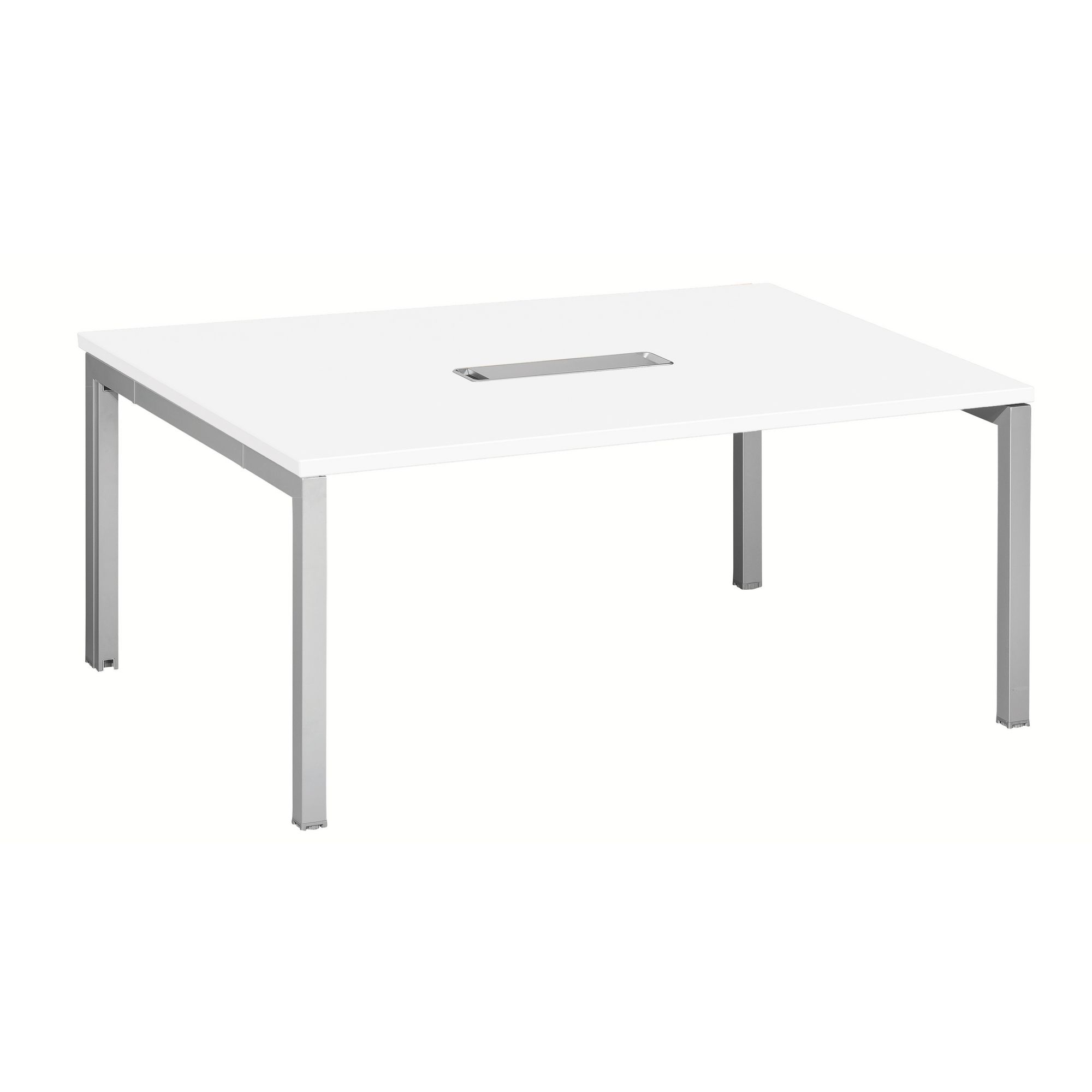 This table features a 2 mm straight ABS edging and includes a cable management box in the center of the tabletop (41.5 x 10.5 cm) with a "U" shaped metal cable duct (usable dimensions H 9 x W 38 x D 9 cm) and a removable plastic-aluminum hatch.