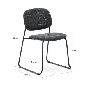 This chair redefines functional elegance for any space. The backrest and seat, upholstered in soft chenille with an inner reinforcement of poplar plywood, provide exceptional comfort. This fabric is also OEKO-TEX® STANDARD 100 certified, guaranteeing environmentally responsible production. The design is complemented by legs in micro-textured metal in a delicate grey tone, which adds a modern and refined touch. The wood used is FSC Mix Credit certified, which guarantees that it is made from a mix of materials from FSC-certified forests and FSC-controlled wood. The leg protectors ensure that the floor remains intact, adding functionality without compromising on aesthetics. Details such as the visible stainless steel screws, with a double-hole design, reinforce its distinctive character.