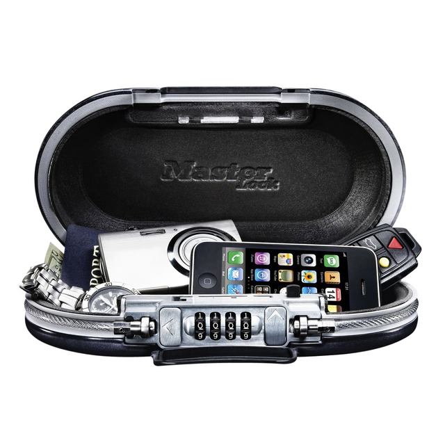 * Le mini coffre sécurisé portable Safe Space® avec combinaison à chiffres et câble de fixation idéal lors de déplacement. * Construction en plastique ABS solide. * Combinaison programmable à 4 chiffres. * Câble de fixation intégré pour attacher le mini coffre à un point fixe: 50cm x ø 5mm. * Encoche pour câbles d’écouteurs ou de chargeur. * Gris foncé et gris métallisé.