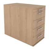 Extra depth, dimensions: W 42,8 x H 51,2 x D 80 cm. 1 pen drawer, 3 storage drawers. Laminated chipboard. Colour: grey. Centralized lock. Drawers on ball bearings, 75% extractable. 4 wheels. Pen holder in the top drawer. Carrying capacity: up to 25 kg.