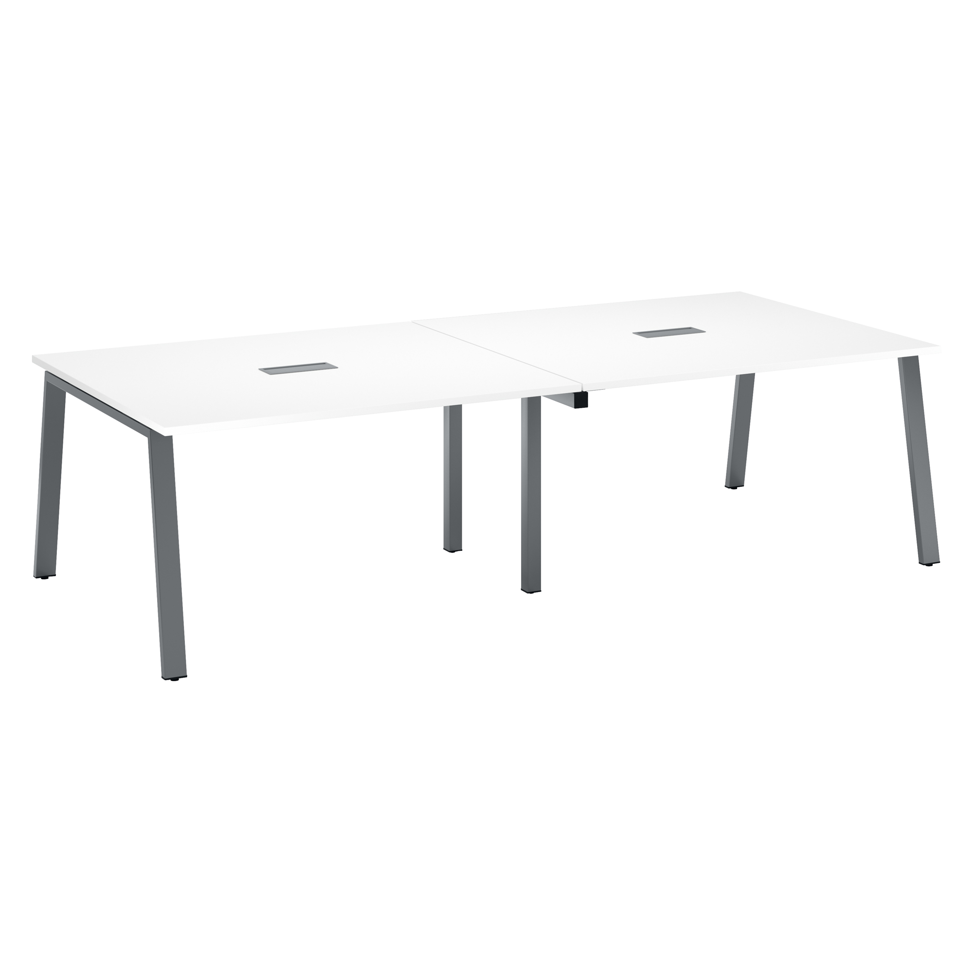 A top access and a cable channel positioned under the tabletop, facilitating the management of sockets and connectivity.
