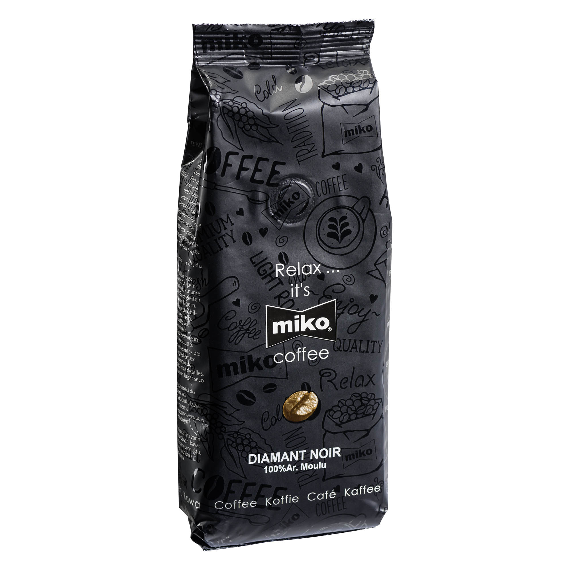 Detailled descriptionGround coffee Miko Black Diamond, our Best Seller!A smooth and refined coffee, illustrated by fragrant notes and a nice long finish.100% ArabicaUnit price. Sold in packs of 4 bags of 250 g.Compatible with all filter coffee machines sold by Bruneau.