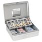 Detailled descriptionAll coins, from 1 cent to 2 euro, have their own compartment. 3 compartments for bank notes. Metal handle integrated in the lid. Steelplate 0,8 mm. Measurements: H 9 x W 30 x D 24 cm. Weight 2,3 Kg.