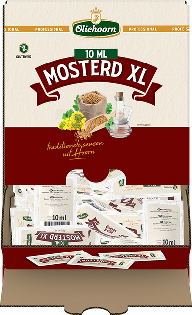Detailled description* Onctueuse et épicée. * La moutarde française d'Oliehoorn est un délicieux assaisonnement à usage général. * La moutarde française d'Oliehoorn constitue également une bonne base pour diverses sauces.