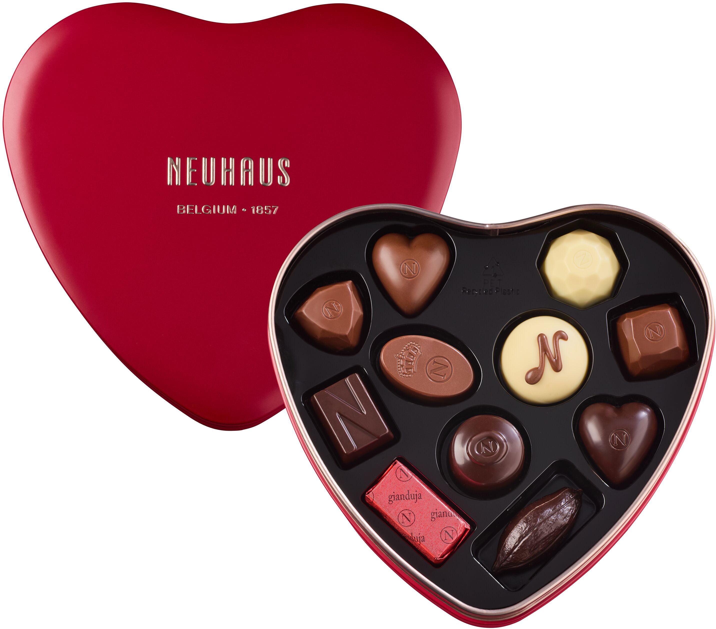 Discover this red heart-shaped metal box, containing 11 refined pralines from Neuhaus. This exquisite blend combines iconic creations and new flavors, offering a unique sensory experience. Ideal for expressing your feelings, this box is the perfect gift to share.