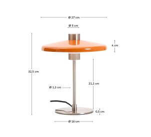 Nuvira table lamp in light grey brushed metal and orange lampshade