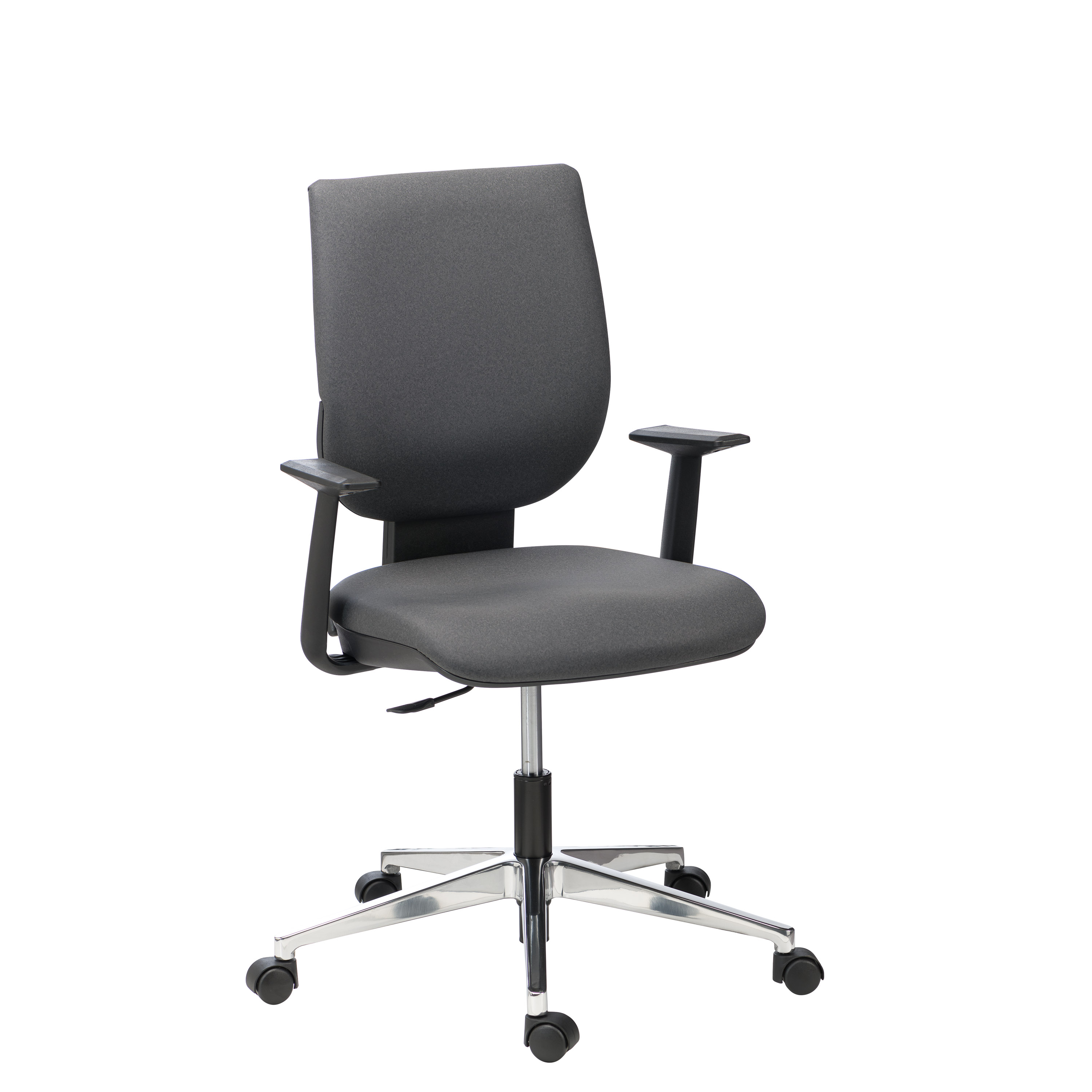 Office chair Nao in anthracite synthetic leather - low back with fixed armrests - permanent Contact mechanism - aluminum base