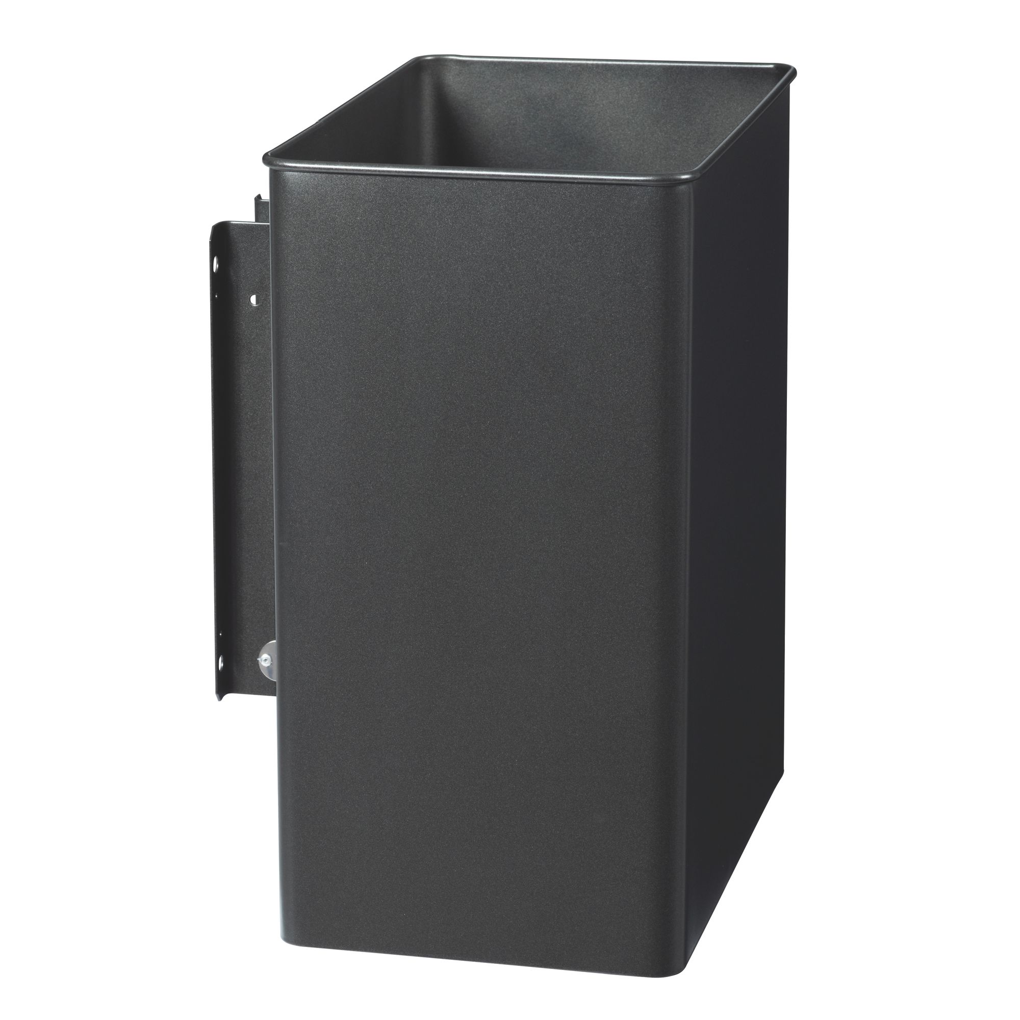 Waste bin 27 liters in steel with powdered polyester. Perforated bottom to let through rain. Pictogram "hand that throws a paper". Automatic closure with spring lever. Fixation on the wall or on a support pillar. Dimenstions: H 39,5 x W 33 x D 21,5 cm. In option: rectangular support pillar in galvanized anthracite steel, height 98,5 cm.