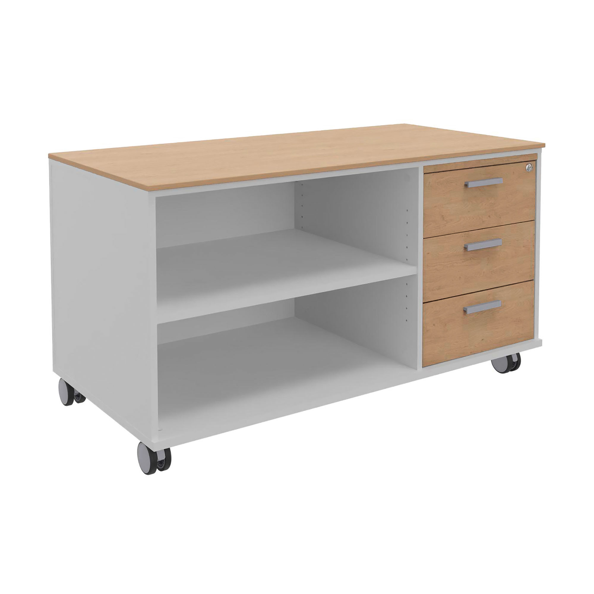 Designed to seamlessly integrate with the Helyos executive desk, this unit combines meticulous design with sturdy materials for daily use without compromises. Featuring three metal drawers, including an integrated pencil holder, a centralized lock, and mounted on wheels, it ensures quick and secure access to your essential documents. A discreet yet essential piece of furniture that combines practicality, mobility, and aesthetics to effectively support your workdays.