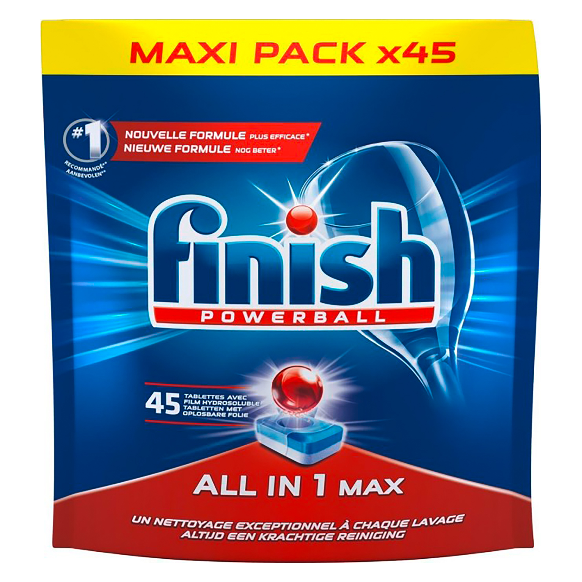 Pack 1 box with 45 dishwasher tablets Finish Powerball all in 1 + 1 for free
