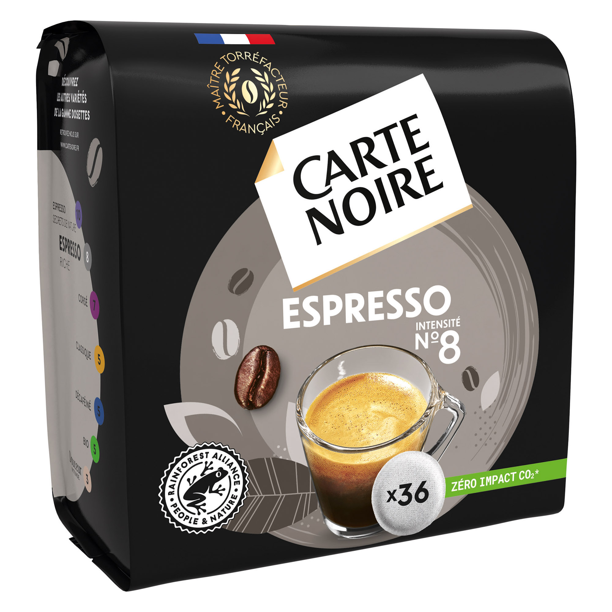 Detailled descriptionA coffee with a strong taste perfectly balanced under a creamy foam. Pack of 36 individual soft pods. Compatible with all pod coffee machines marketed by Bruneau.