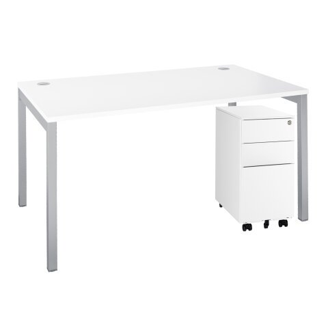 Get two for the price of one by purchasing this desk and pedestal set! The set includes the Squadra straight desk and the small width Bruneau metal 3-drawer mobile pedestal.
