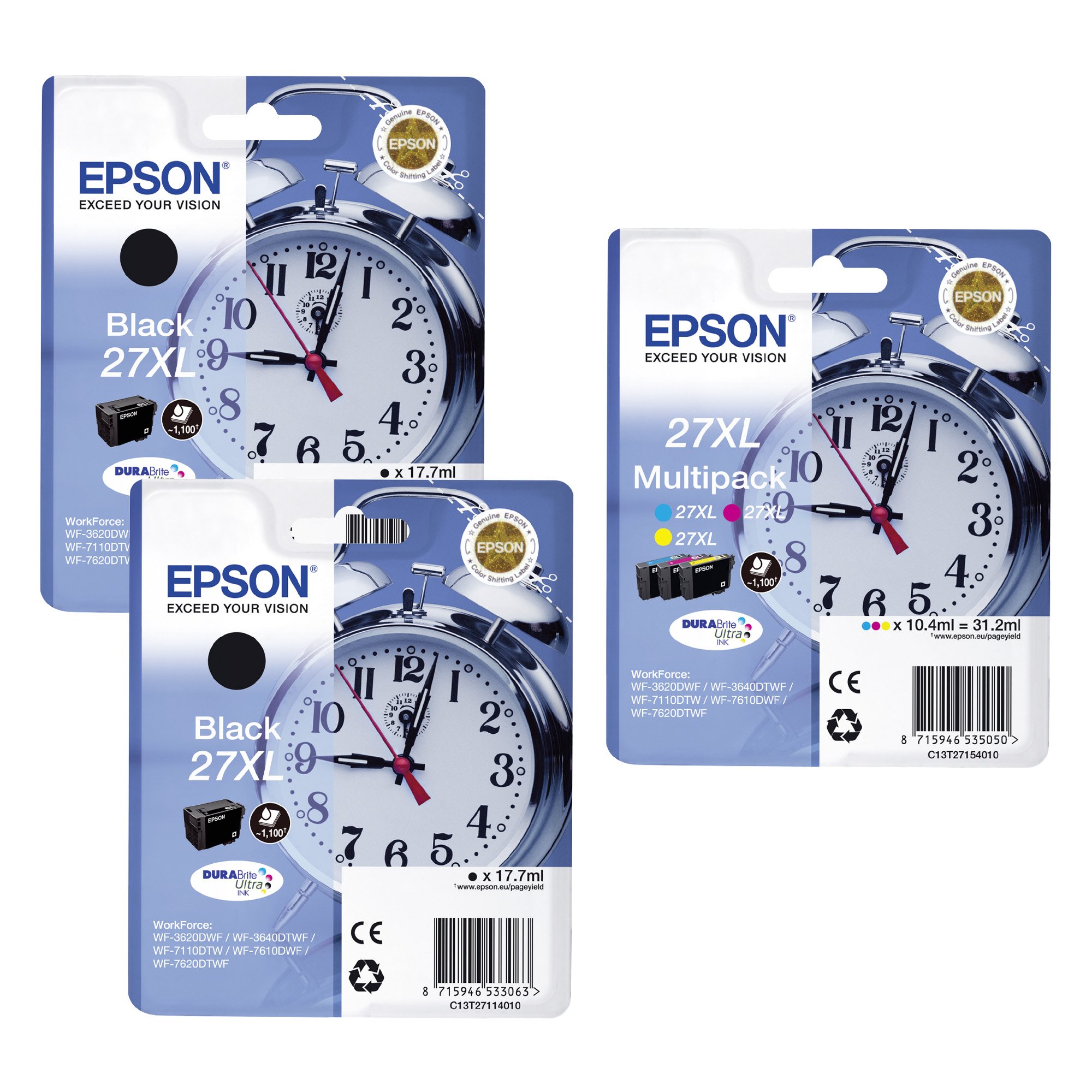 Epson Big pack 27XL - 2 black, cyan magenta yellow - High capacity - for inkjet printer