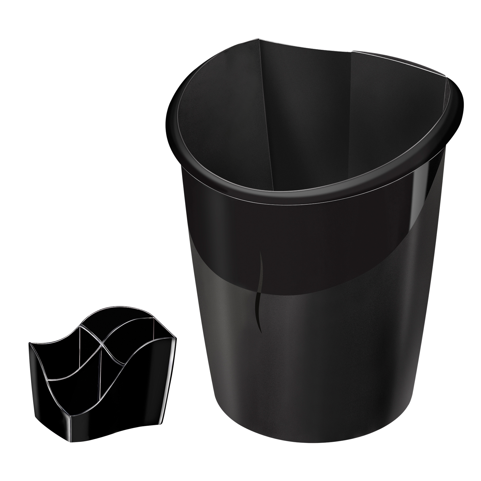 - Pen holder 4 compartments: 3 for writing equipment (up to 45 pencils), 1 small compartment for little accessories (paperclips, rubbers, etc. ) Shock resistant polystyrene 90% recycled, 100% recyclable, Blue Angel certified. Dimensions: H 9,8 x W 11,8 x D 8,9 cm.