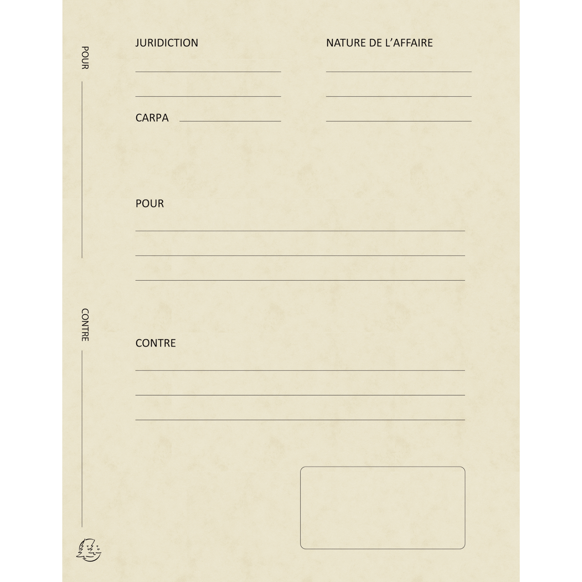 - format of 25 x 32 cm allowing the use of pleading sub-files of 22 x 31 cm