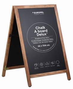 Ce panneau trottoir DELUXE est utilisable des deux côtés, vous permettant ainsi d'afficher plusieurs messages ou promotions en même temps. Pesant 8 kg, il est suffisamment stable pour résister aux conditions météorologiques, tout en étant facile à déplacer et à installer.