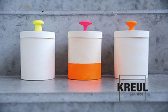 Peinture de jour fluorescente à base d'eau, crémeux semi- couvrant, brillance intense sur le support blanc, lumineux dans le noir, résistant à l'eau et à la salive, pour peindre sur du bois, papier, carton, polystyrène, pierre etc.