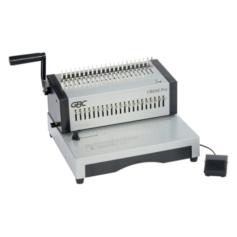 La CombBind® CB25E Pro est une perforelieuse électrique durable conçue pour le bureau, la maison et l'école avec des exigences d'utilisation moyennes. Les picots de sélection réglables permettent de s'adapter sans effort aux formats de papier jusqu'au A4, avec la possibilité d'ajuster la profondeur des marges. Caractéristiques du produit : * Relie jusqu'à 500 feuilles (70 g/m²) à la fois avec un peigne de reliure de 51mm. * Perfore jusqu'à 25 feuilles à la fois (70 g/m²). * Relie les documents A4/A5 portrait et A3 portrait. * Perforateur électrique avec pédale. * 21 picots de sélection pour le réglage des formats de papier jusqu'au A4. * Profondeur de marge réglable. * Alimentation horizontale. * Bac de récupération facile d'accès pour les grandes quantités de documents déchiquetés. * Utilisation avec des peignes de reliure de 6mm à 51mm. * Patins en caoutchouc antidérapants. * Boîtier entièrement métallique pour une utilisation intensive et un design compact.