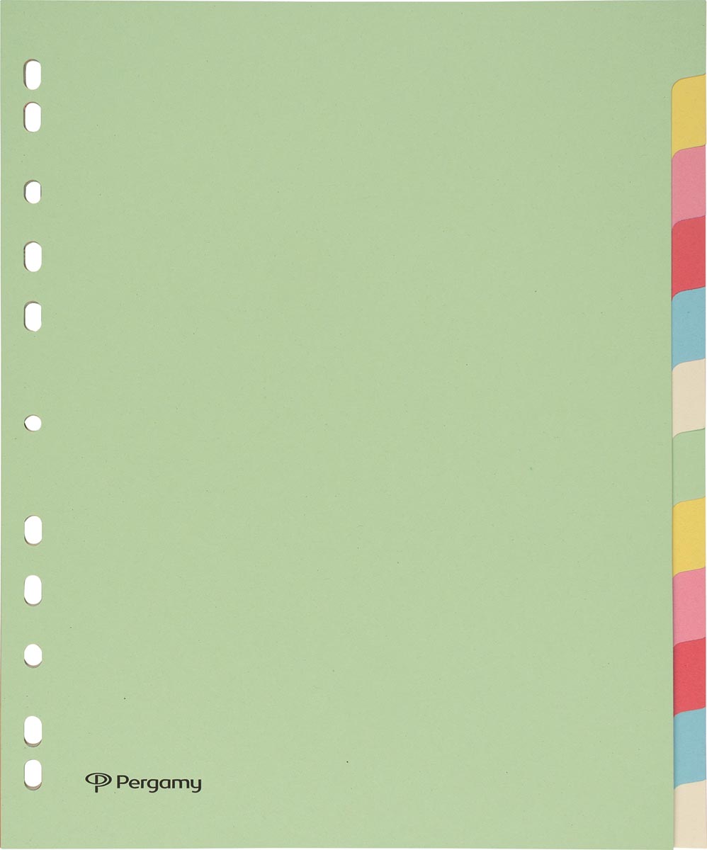 Pergamy intercalaires, ft A4 maxi, perforation 11 trous, carton, couleurs assorties pastel, 12 onglets