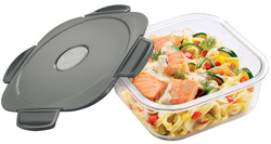 Detailled descriptionEn verre, lavable en lave-vaisselle, couvercle avec valve à micro-ondes, étanche, fermeture à clip, pour chauffer au micro-ondes, dimensions : (L)200 x (P)200 x (H)70 mm