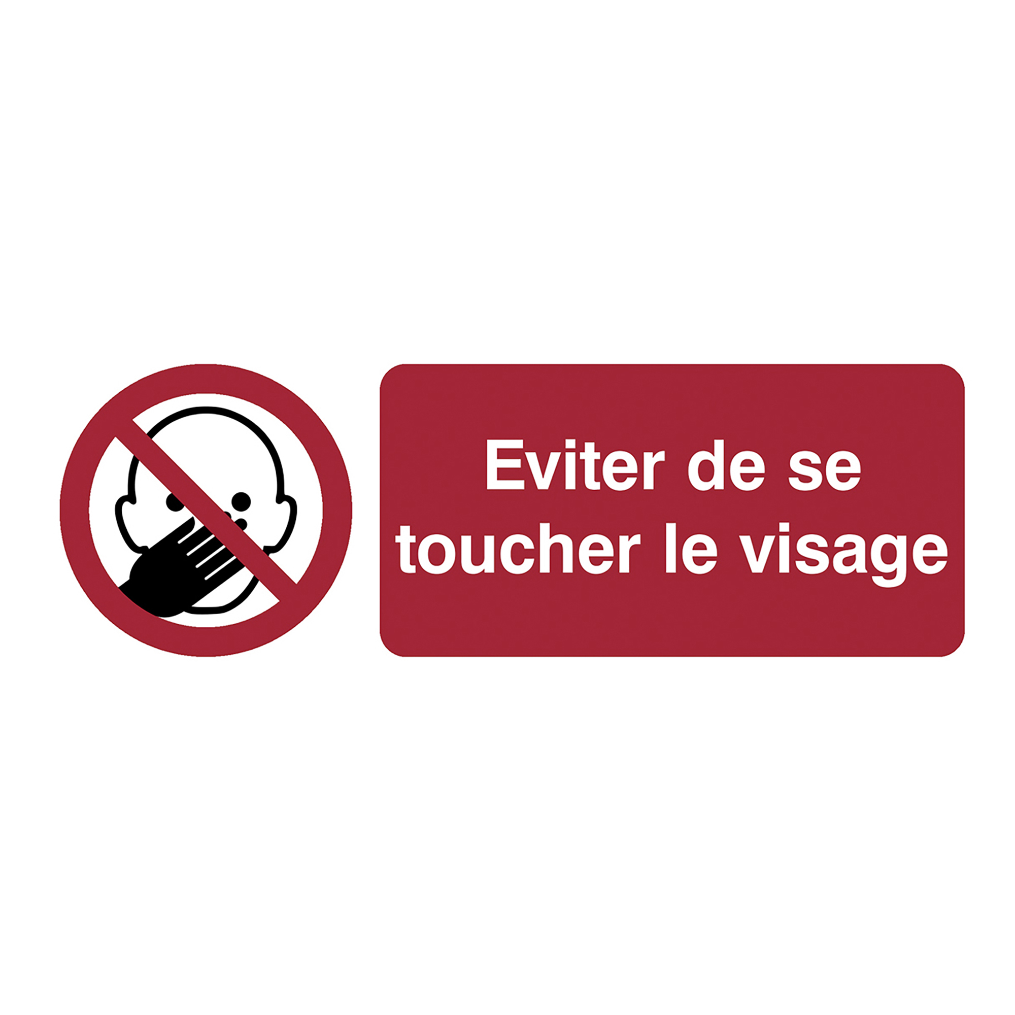 Detailled descriptionSelf-adhesive pictogram 'avoid touching your face'. Size 200mm x 80 mm. Price per piece. Do you need multiple pieces? Send us an email for a quote. Your sticker can also be customized with your company logo...