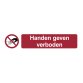 Detailled descriptionPictogramme autocollante ‘handen geven verboden’. Format 200mm x 80 mm. Prix par pièce.Avez-vous besoin de plusieurs pièces? Envoyez-nous un e-mail pour un devis. Votre autocollant peut également être personnalisé avec le logo de votre entreprise,…