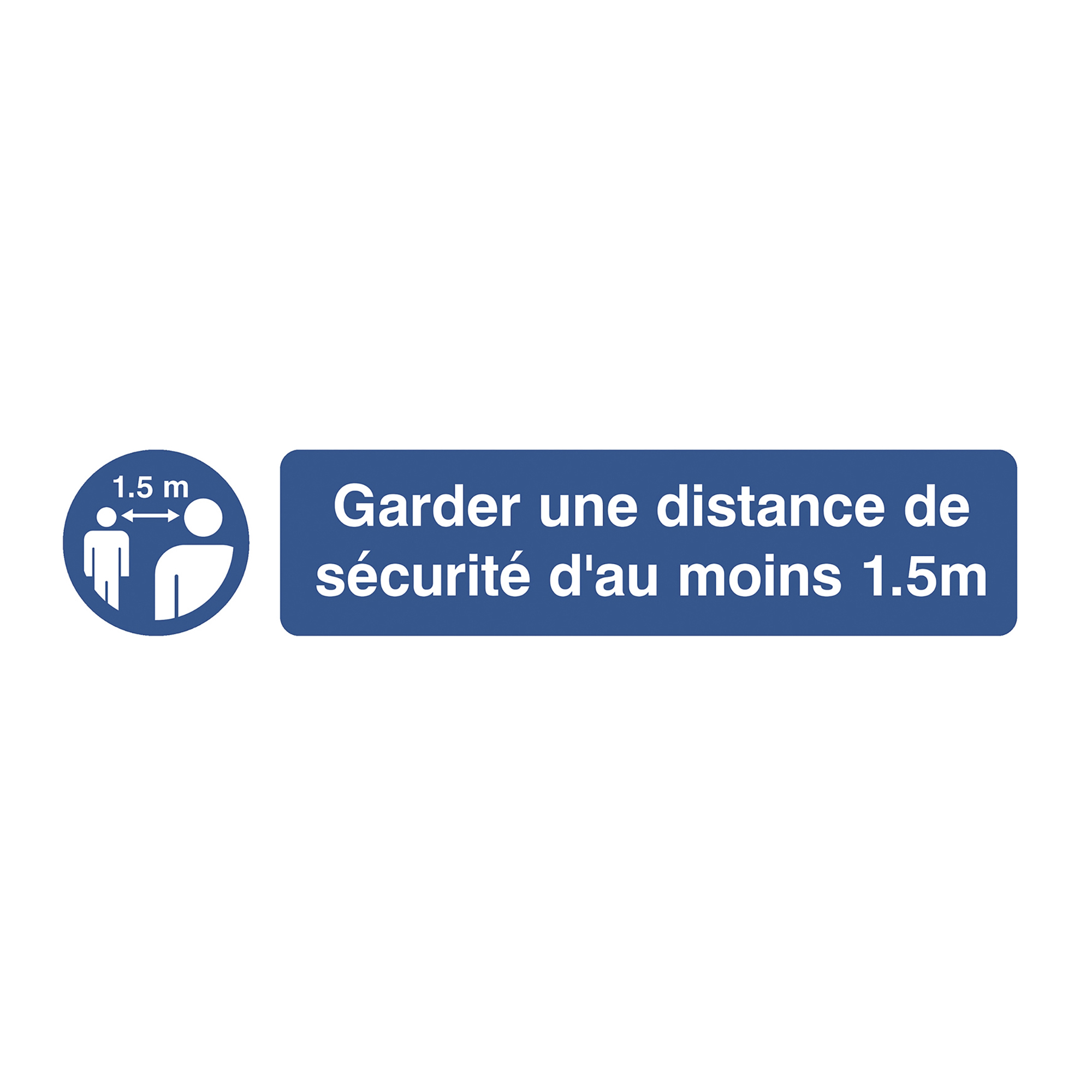 Detailled descriptionSelf-adhesive pictogram 'keep a safety distance of at least 1.5m'. Size 200mm x 80 mm. Price per piece. Do you need multiple pieces? Send us an email for a quote. Your sticker can also be customized with your company's logo,…