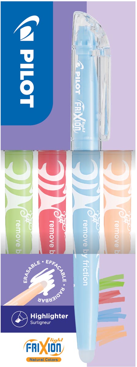 Detailled descriptionPointe biseautée. Encre effaçable: marquer, effacer avec l'arrière du marqueur et marquer de nouveau. Les couleurs disparaissent par la chaleur générée lors qu'une frixion avec la gomme du capuchon. Encre en couleurs assorties.