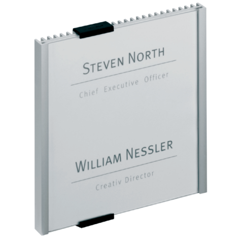 * Plaque de signalisation avec bords en aluminium et plaque de protection amovible en acrylique transparent anti-reflet. * Livrée avec 1 insert, instruction et set de montage. * Fixation à l’aide des vis ou pastilles adhésives. * Disponible en 7 formats.