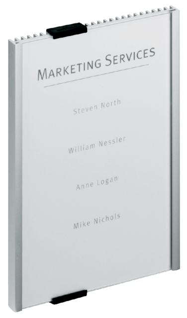* Plaque de signalisation avec bords en aluminium et plaque de protection amovible en acrylique transparent anti-reflet. * Livrée avec 1 insert, instruction et set de montage. * Fixation à l’aide des vis ou pastilles adhésives. * Disponible en 7 formats.