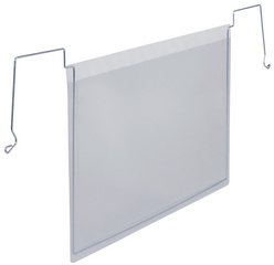 Detailled descriptionTransparent, fil de fer galvanisé, passe au scanner, protège le contenu, ouverture sur le haut pour un changement facile de l'étiquette à insérer, dim. int.: (L)210 x (H)148 mm contenu: 50 pièces