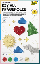 Detailled description5 feuilles, épaisseur: 70 microns, pour travaux d'estampage,assorti dans les couleurs: rouge, vert, bleu, argent et or