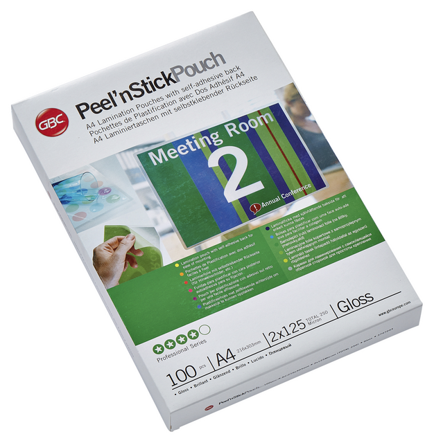 Optez pour la Pochette à plastifier Peel'nStickPouch de Gbc, une solution idéale pour protéger et valoriser vos documents au format A4. Conçue pour les professionnels exigeants, cette pochette offre une qualité de plastification exceptionnelle grâce à son verso autocollant et sa finition brillante.