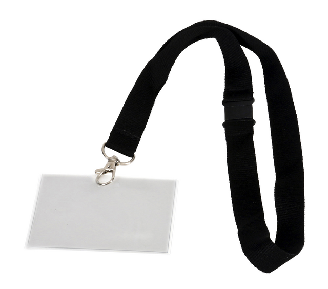 Detailled descriptionTransparent PVC badge holderWith a hole to attach the lanyardSuitable for 90x60mm size cardsClosed versionIncludes black lanyard with metal lobster clasp and plastic fastenerLanyard dimensions: width 20mm, length 44cmPackaged as 2x5 pieces.