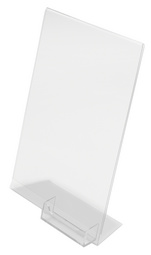 Detailled descriptionEn polystyrène transparent, pour une présentation d'un seul côté, avec compartiment additionnel pour cartes de visite (98 x 50 x 25 mm), dim. du présentoir : (L)210 x (H)297 mm