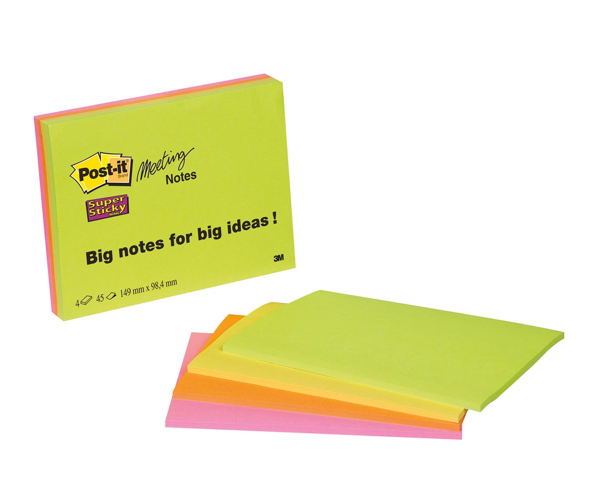 Les Post-it® Super Sticky Notes collent plus fort et plus longtemps que la plupart des notes à coller, vous donnant ainsi la garantie que votre message passera. Parfaits pour les surfaces verticales et qui adhèrent difficilement, ils sont très résistants,très polyvalents et offrent une grande visibilité. Couleurs assorties. Certificat : PEFC
